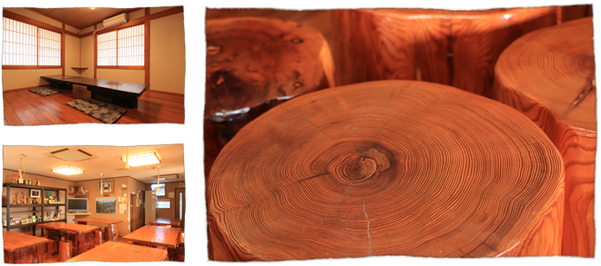 食事処の椅子やテーブルは全て屋久杉で出来ています。