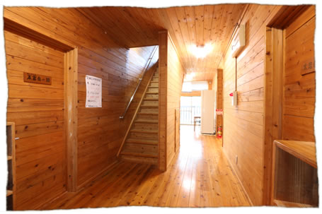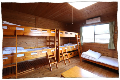 木製の建物でお部屋は広めで、2段ベッドでお休み頂きます。